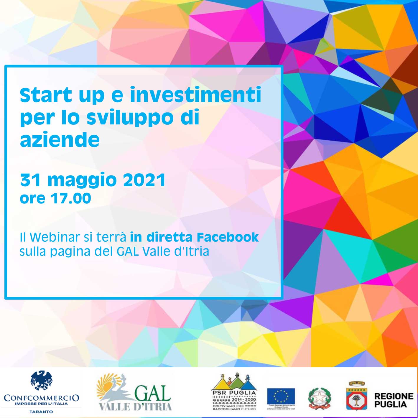 Si terrà il 31 maggio prossimo sulla pagina Facebook del GAL Valle d'Itria