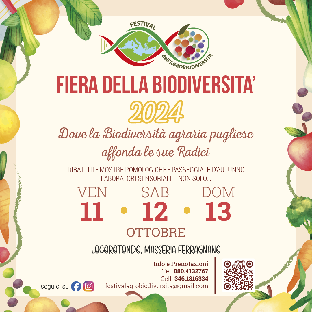 Sono aperte le iscrizioni per esporre alla prima edizione della Fiera della Biodiversità nei giorni 11, 12 e 13 ottobre 2024 presso Masseria Ferragnano a Locorotondo (Ba).