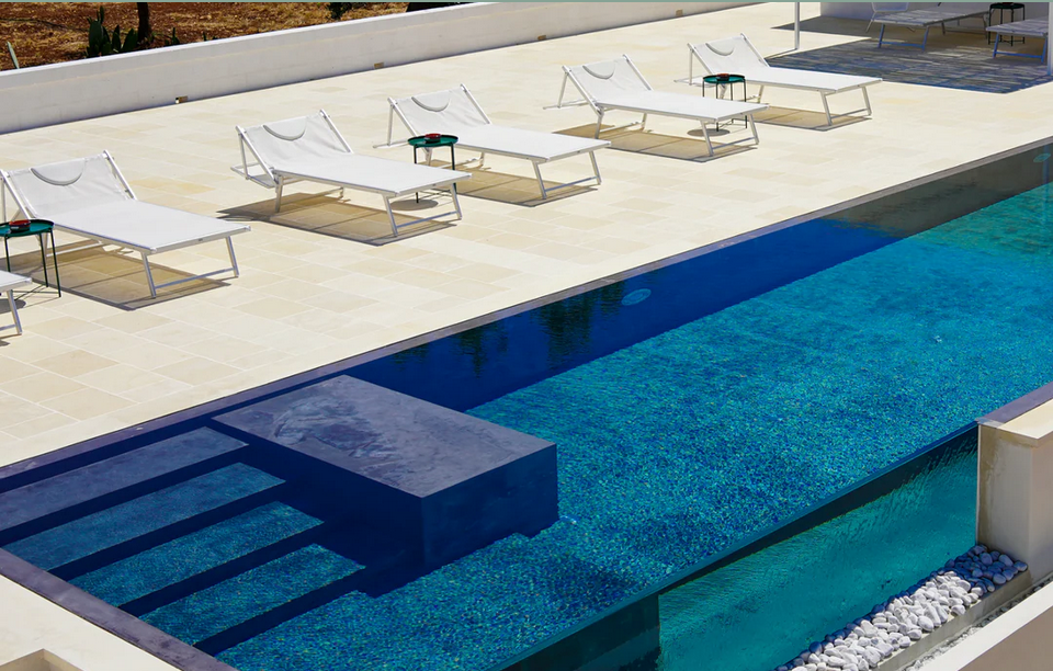 Con il finanziamento del GAL Valle d’Itria ha realizzato la meravigliosa piscina a sfioro contornata dagli ulivi millenari di Masseria Pezze Galere.